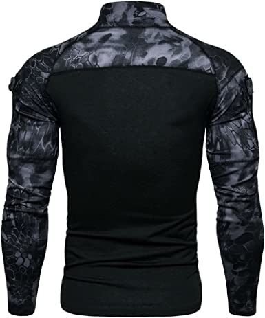 Men's Casual Camouflage T-Shirts Splicing Craft Slim Fit Shirts Zipper Neckline Long Sleeve T-Shirts