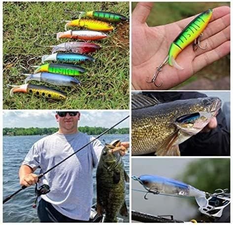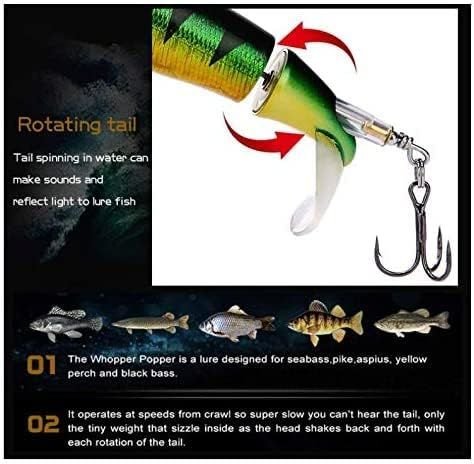 RTGSE 10Pcs Fishing Lure for Bass Whopper Topwater Fishing Lures with Floating Rotating Tail Barb Treble Hooks in Saltwater Freshwater Plopping Lures